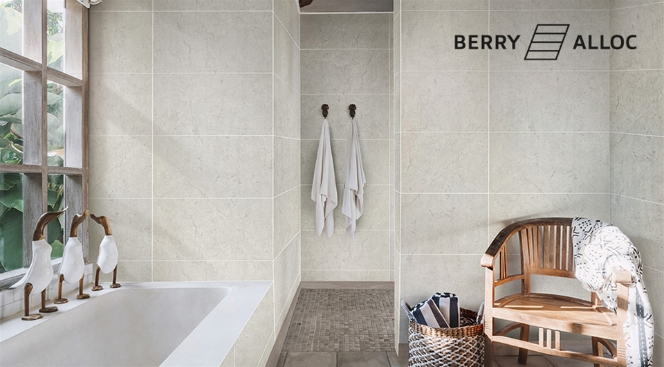 BerryAlloc Wall & Water laminated wall panels offer a stylish, grout-free solution for modern bathrooms and wet areas. These high-pressure laminate panels are fully waterproof and designed to perform in humid environments such as showers, bath surrounds, and extended bathroom walls. With a wide range of tile, stone, and contemporary finishes, BerryAlloc panels provide the look of real tile without the maintenance of grout.